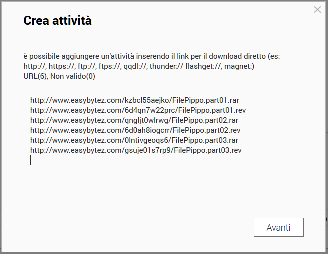 In questa pancia vuota inseriamo i nostri vari link da scaricare (SANTISSIMO COPIA / INCOLLA !), ricordandoci che un bug della DL Station richiede un invio alla fine dell'ultima riga inserita: