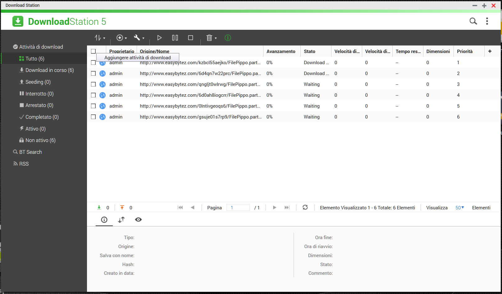 Ok, allora ecco qui il brevissimo tutorial, la ricetta per scaricare "à la JDownloader" dal nostro MITICO nas: