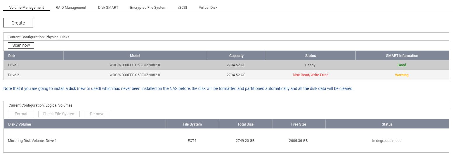 FFFAB ha scritto: 12/06/2020, 13:16 Per la sostituzione dovrebbe essere sufficiente spegnere, cambiare disco e riavviare: se il nuovo disco è vergine, il rebuild dovrebbe partire automaticamente.