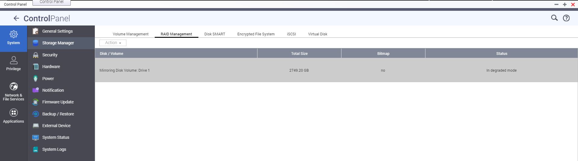 Ho spento il NAS e cambiato il disco.