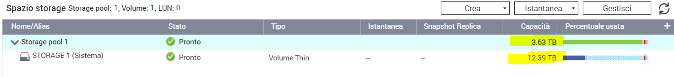 e' thin e la percentuale l'ho settata, in precedenza, al 95%, le snapshot non le ho mai attivate, altrimenti e' inutile avere un raid 1, sbaglio?PiaNi ha scritto: 28/05/2021, 22:38 Ma hai un volume statico o thin?