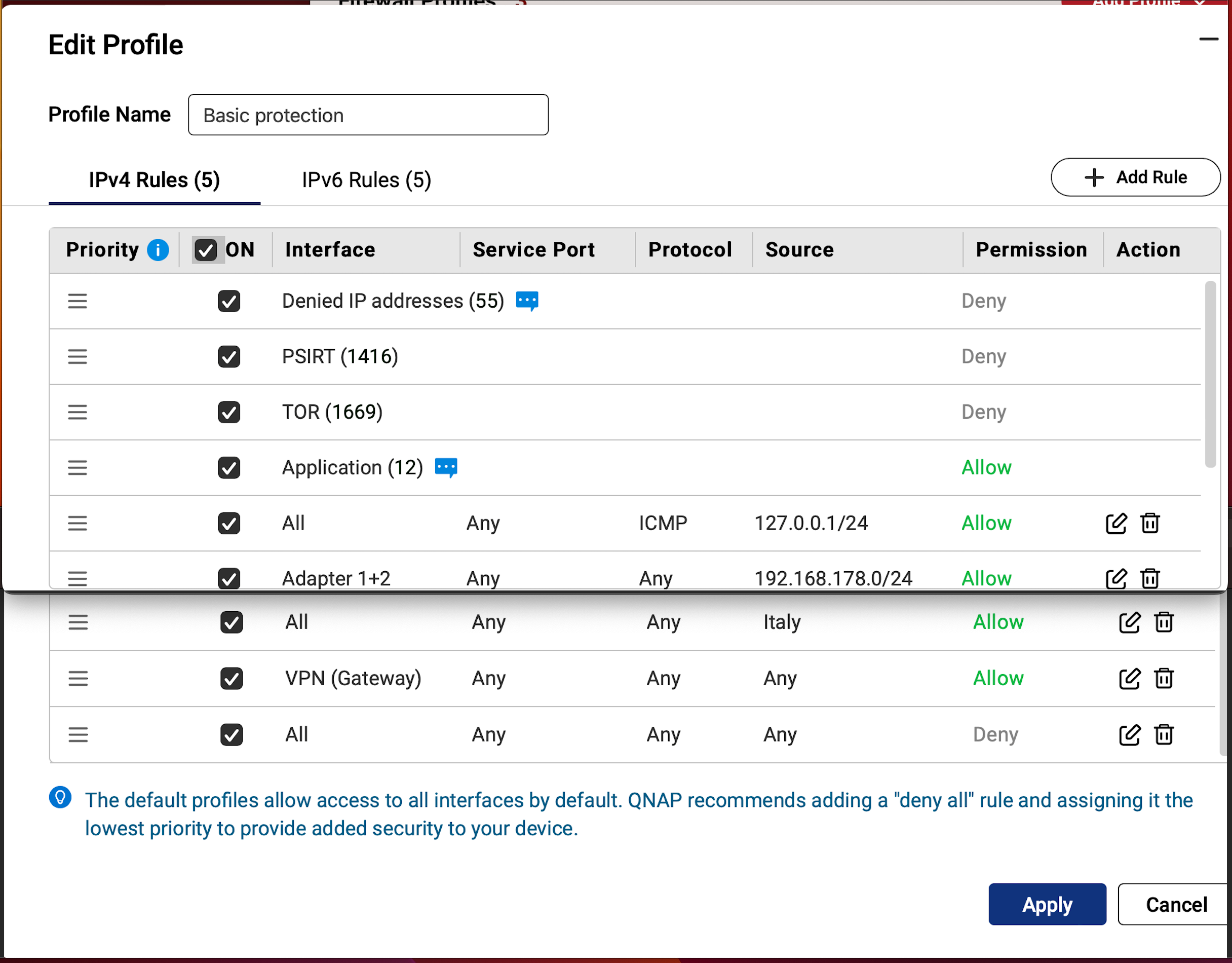 - Da cellulare in Qmanager nel Firewall non è gestibile la lista degli IP bloccati. Si puo' solo rimuovere, sospendere e nient'altro di più