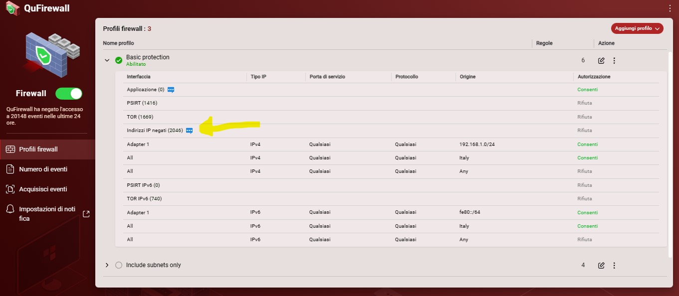 - Accedo con l'interfaccia Web e vado ad eliminare in QuFirewall l'IP bloccato... salvo ed esco dal Web.