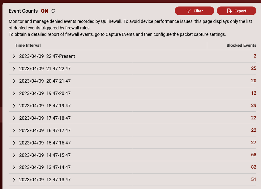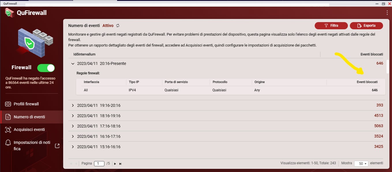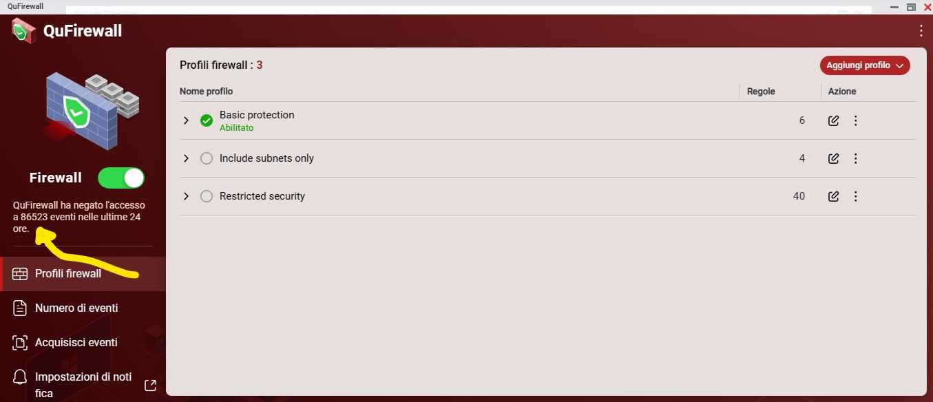 ma ora che riesci ad entrare nell’interfaccia grafica tramite browser, se abiliti QuFirewall ti butta subito fuori?