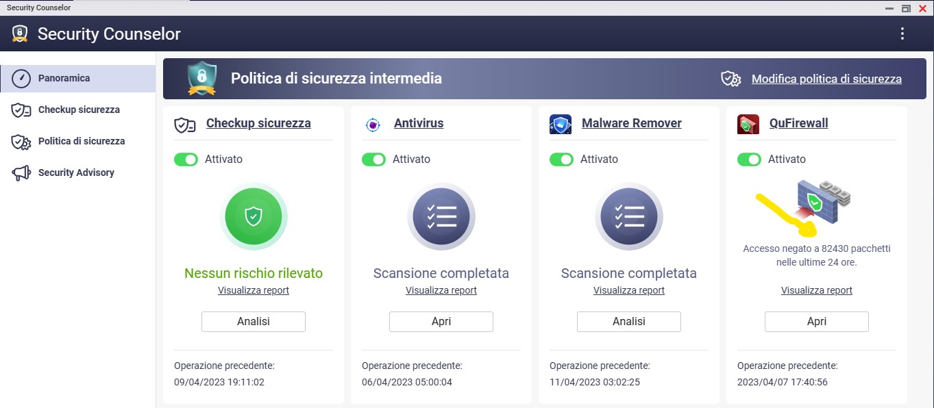 - Ho sempre tenuto configurato nel Nas che dopo 5 tentativi di accesso effettuati a breve distanza, di bloccare l'indirizzo IP in modo permanete