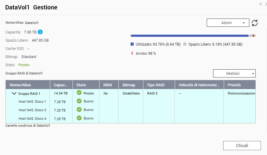 Re: Nas TS-453a - problema migrazione da volume statico a RAID1 a RAID5