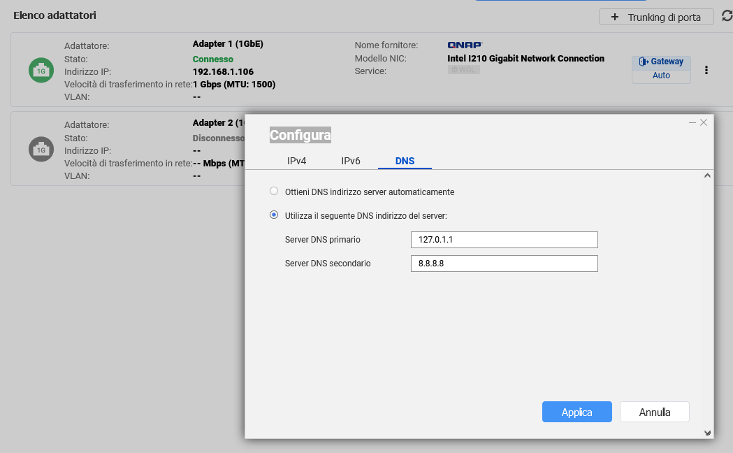 Spero di essere nella sezione giusta, ma potete dirmi come si impostano i DNS sulla scheda di rete del Nas?