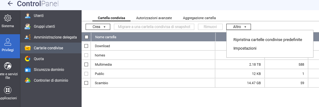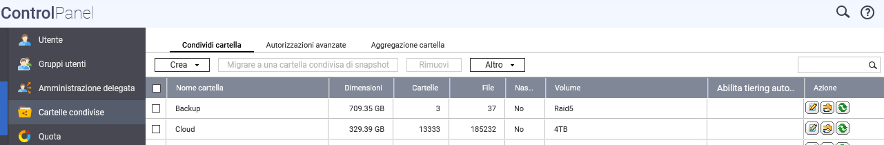 [CUT] … ma hai provato a fare il controllo del file system tramite l’interfaccia grafica, cioè con “Archiviazione/Snapshot”? [CUT]