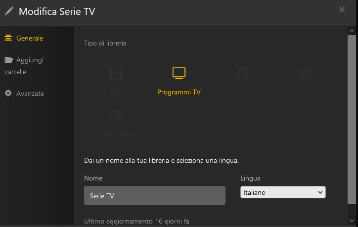Seconda cosa, quando crei le librerie per le serie tv, usi programmi TV o Film?, vedi allegato.