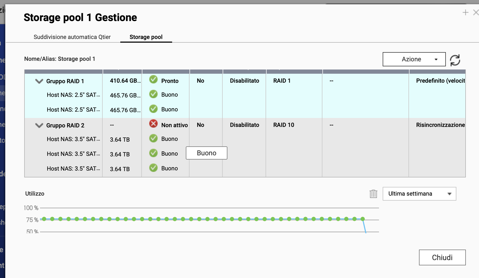 il problema è il seguente... qualche giorno fa mi arriva una notifica che il disco 1 (WD-Red) aveva dei problemi, ne avevo già uno di riserva, stacco il disco a caldo, inserisco il nuovo, rebuild automatico del QNAP e tutto funziona perfettamente senza allarmi, dopo 2 giorni forse 3 mi viene indicato che anche il disco 2 ha problemi, ordino un nuovo disco, stacco il vecchio inserisco e qui arriva il "casino", il disco viene rilevato ma non mi fa rebuild (perché? bhoo), ed ho il naso bloccato dove non vedo più le mie vecchie cartelle, ne tantomeno funziona QVR-Pro... da stupido non ho mai fatto uno snapshop (ho il backup dei file in un nas esterno quindi quelli li recupero.. quello che mi scoccia è tutta la configurazione del QVR-Pro)