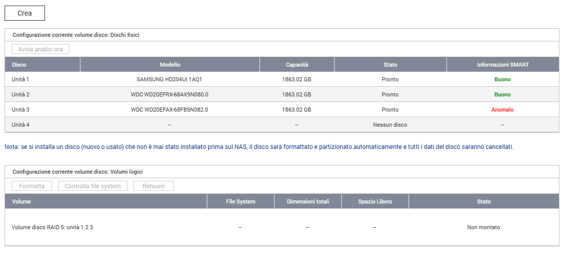 praticamente ho trovato il disco 1 assente ed il disco 3 con anomalie.