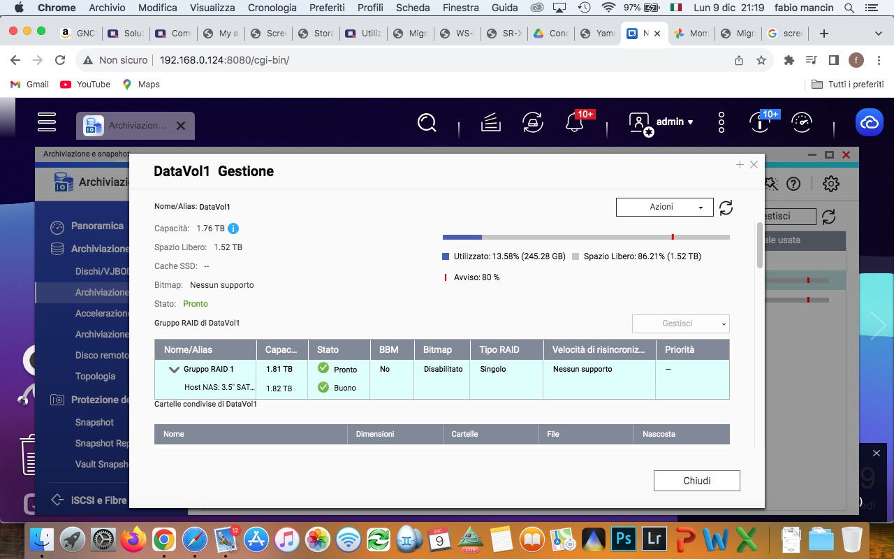 ho un Qnap TS-251+ configurato con 2 unità singole da 2Tb ciascuna.