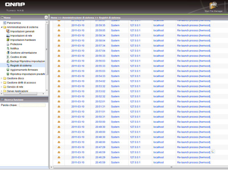 mi sono accorto del qnap acceso ed ho guardato i registri di sistema...