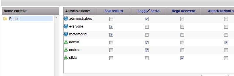 Come potete notare ho messo per il gruppo motorini SOLA LETTURA in Public ma in realtà può anche scrivre.