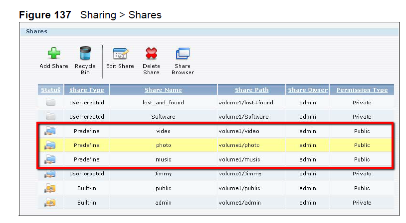 Allora ti spiego, Ho attaccato il NAS, L'ho rinominato in ZYXEL, ho condiviso un paio di cartelle