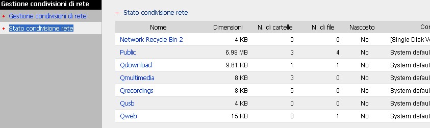 Inoltre sotto "Gestione condivisioni di rete" "Stato condivisione rete" trovi l'occupazione di ogni singola share: