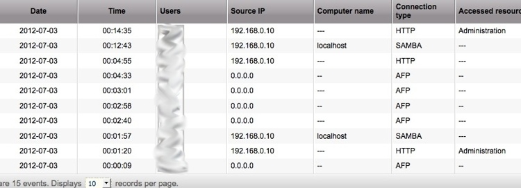 volevo chiedere se qualcuno può verificare se in System Administration->System Logs e nel tab System Connection Logs quando ci si connette con protocollo AFP Vi compare Source ip corretto