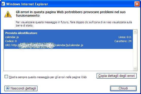 Segnalazione: se utilizzo explorer (ie8) per collegarmi al server (es: 192.168.1.1/owncloud) non viene visualizzato il calendario (in basso a dx del browser appare l'errore: se invece provo a visualizzarlo con FireFox è tutto ok.