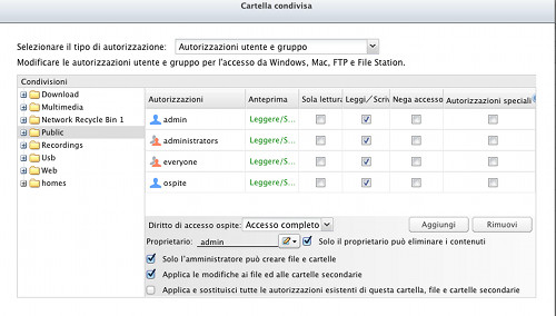 In teoria mi piacerebbe creare un utente "guest" con password dedicata, ma in questo momento mi andrebbe bene anche una cartella pubblica visibile con accesso libero.