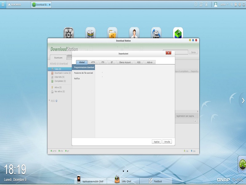 ciao a tutti, io ho un ts-469l (ora montato 4.0.5 e 3gb di ram) ed un mio amico il ts-412, io ho provato sia con qts 3.8.4, 4.0.3 o 4.0.5, il mio amico solo con la 3.8.2 e a nessuno dei due funziona la programmazione dei download. cioe' quando entro nelle impostazioni della download station e ci clicco sopra non viene caricata la parte per la programmazione. provo a postare uno screen... non ho trovato modo di risolvere il problema...