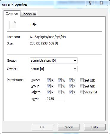 E' IMPORTANTISSIMO che il file che ho allegato nello zip (ovvero l'unrar aggiornato da 233Kb) dopo essere messo nella directory /share/HDA_DATA/.qpkg/pyload/opt/bin/ (oppure con i nuovi aggiornamenti sarà: /share/ NOME DELL'UNITA' /.qpkg/pyload/opt/bin/ ) dovranno essere modificati i permessi cliccando in proprietà e modificando l'Octal in 0755 come da immagine allegata.