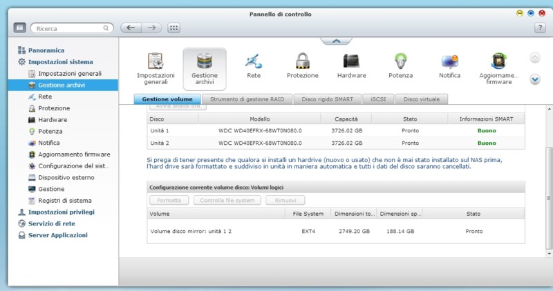 Ho un NAS TS-219PII Turbo nato con due Hardisk da 3 TB cad- il Firmware è 4.0.2