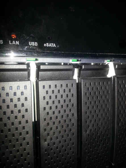 Ora ho messo 4 dischi da 3 Tb della Toshiba in Raid 5 ed è iniziata la tortura. Le baie vibravano e facevano un rumore molto fastidioso, ho provato a risolvere in parte con l'inserimento di sottili strisce di materiale isolante