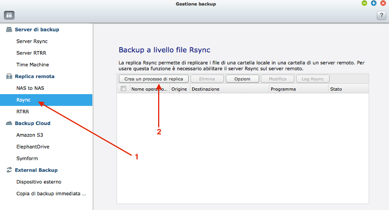 Adesso seleziona la voce "Replica Remota -> Rsync"